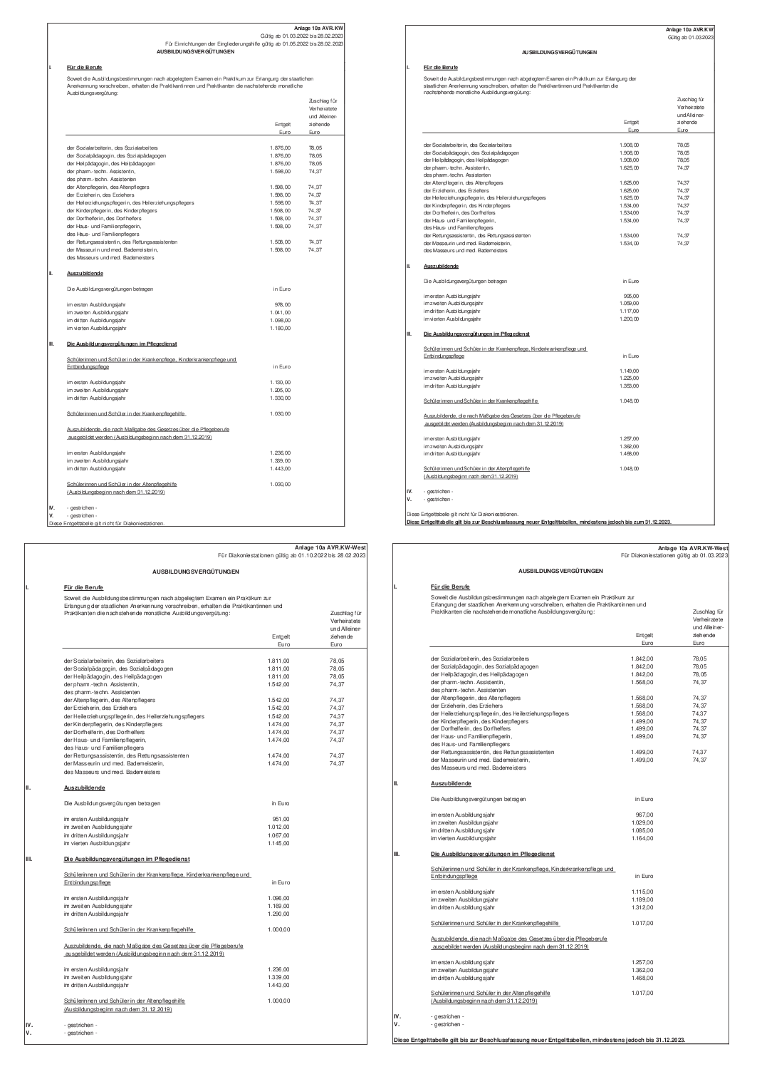 - Die ab dem 1. März 2022 bzw. 1. März 2023 geltenden Entgelttabellen sind als Anlagen beigefügt.